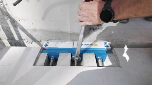 Bevor der Balkon angeschlossen wird, muss der Dämmkörper von Schöck Isokorb IQ K an der Geschossdecke angebracht werden.