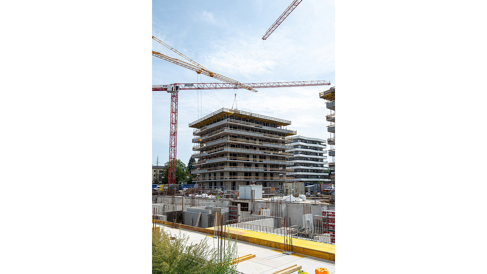 Nach dem Rohbaustart im Februar 2025 schreiten die Arbeiten zügig voran. Die Rohbauten der beiden Punkthäuser sind bereits weit fortgeschritten, während beim Terrassenhaus die Bodenplatte fertiggestellt wurde. Die Fertigstellung des gesamten Projekts ist für 2026 geplant.