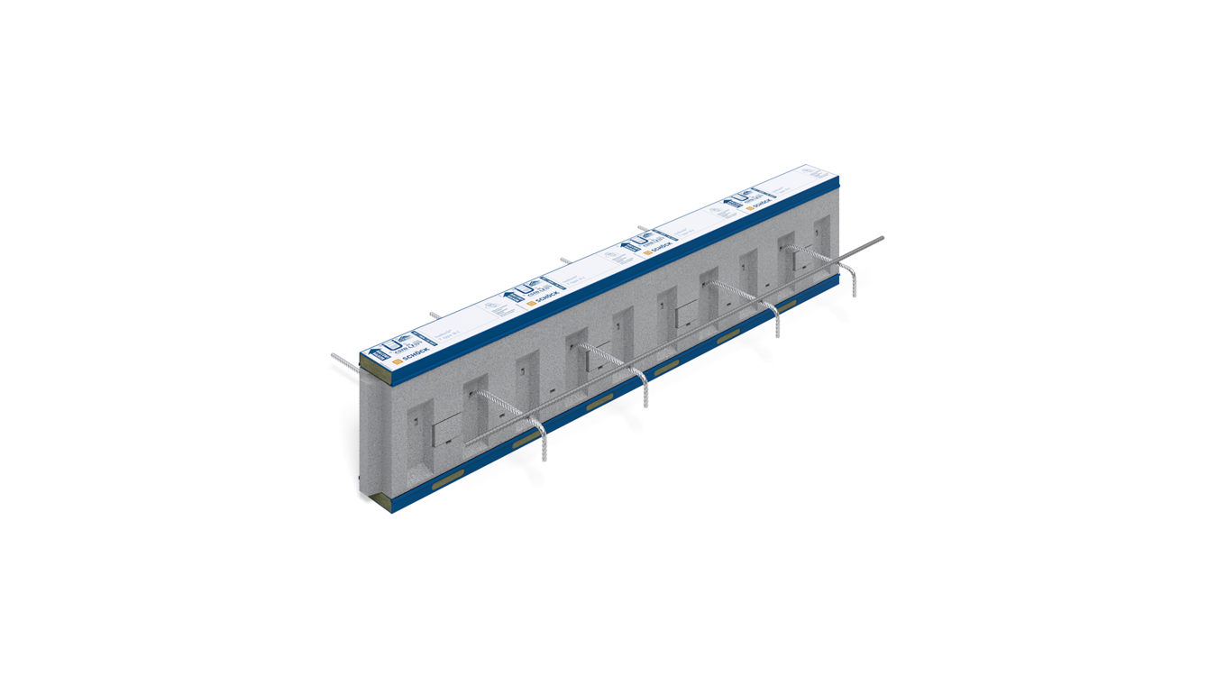 Tragendes Wärmedämmelement für gestützte Balkone im zwängungsfreien Anschluss. Das Element überträgt positive Querkräfte.