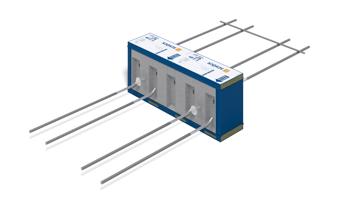 Tragendes Wärmedämmelement für gestützte Balkone. Das Element überträgt positive Querkräfte. Ein Element mit der Tragstufe VV überträgt zusätzlich negative Querkräfte.
