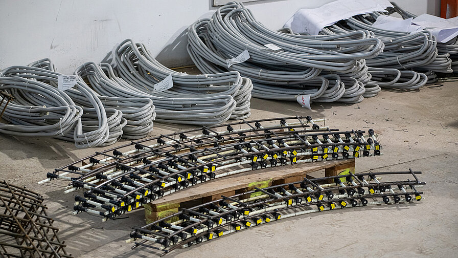 Die fertigen Körbe wurden im weiteren Produktionsverlauf in die Schalungsvorrichtung eingelegt, in die anschließend der Beton eingebracht wurde.