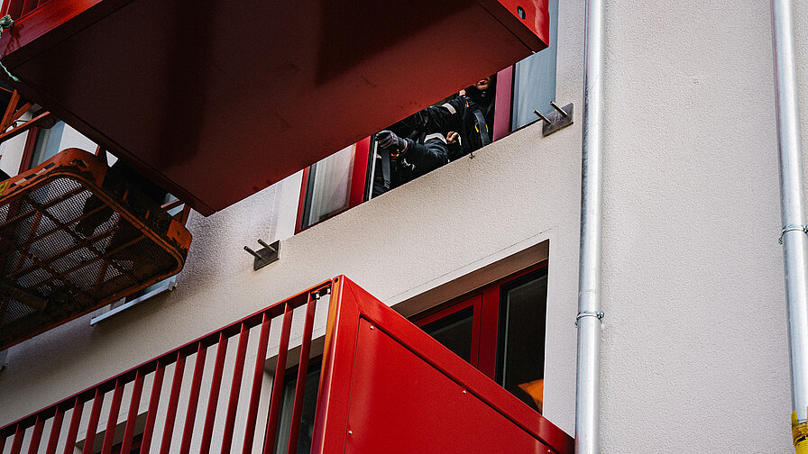Als ausschlaggebend für die Wahl von Schöck Isokorb nennt Erdmann darüber hinaus den Schraubanschluss, der "optimal zu den Anforderungen des Modulsystems passt. Er kann überdies bereits im Werk vorinstalliert werden, was den Vorfertigungsgrad erhöht. Auf der Baustelle müssen die Balkone dann nur noch angeschraubt werden, was wiederum eine hohe Zeitersparnis mit sich bringt." Außerdem punktete das Bauelement mit der Möglichkeit der nachträglichen und bauzeitenflexiblen Montage, "da wir bei der Landsberger Allee die Balkone erst nach Fertigstellung der Fassade anbringen können."