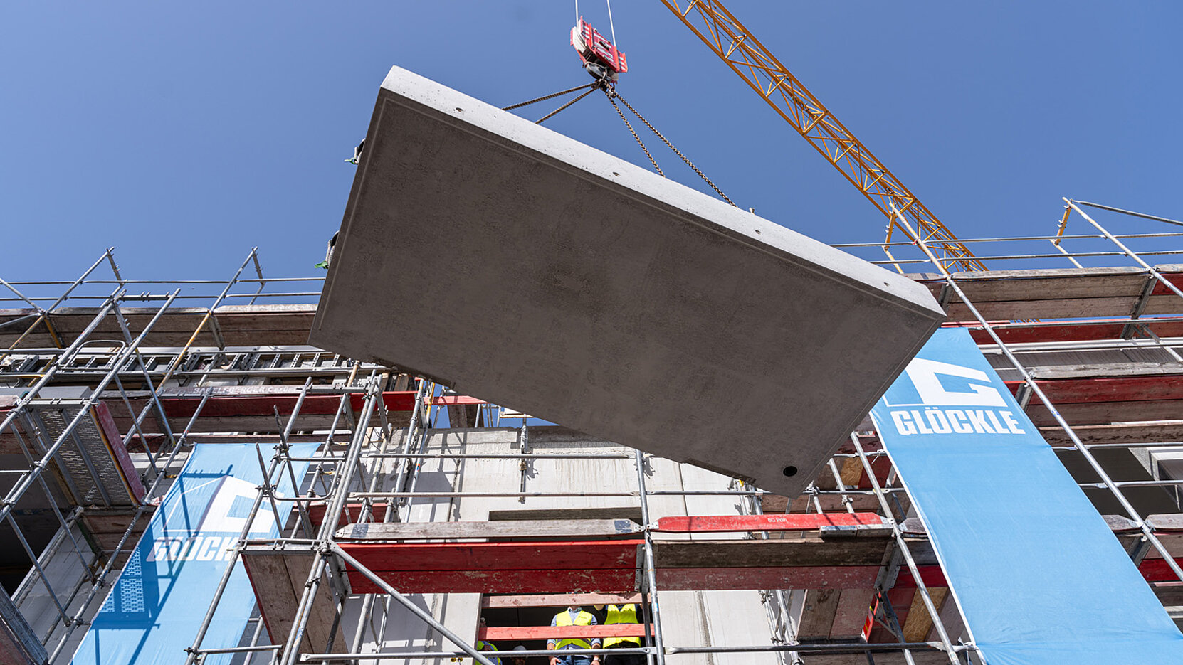 Die Balkonplatte wird per Kran eingehoben...