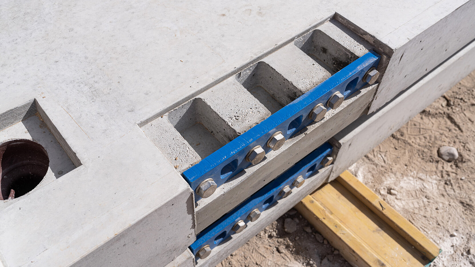 Die Balkonfertigteilelemente werden im Werk mit den erforderlichen Aussparungen und der Verbindungsplatte versehen.