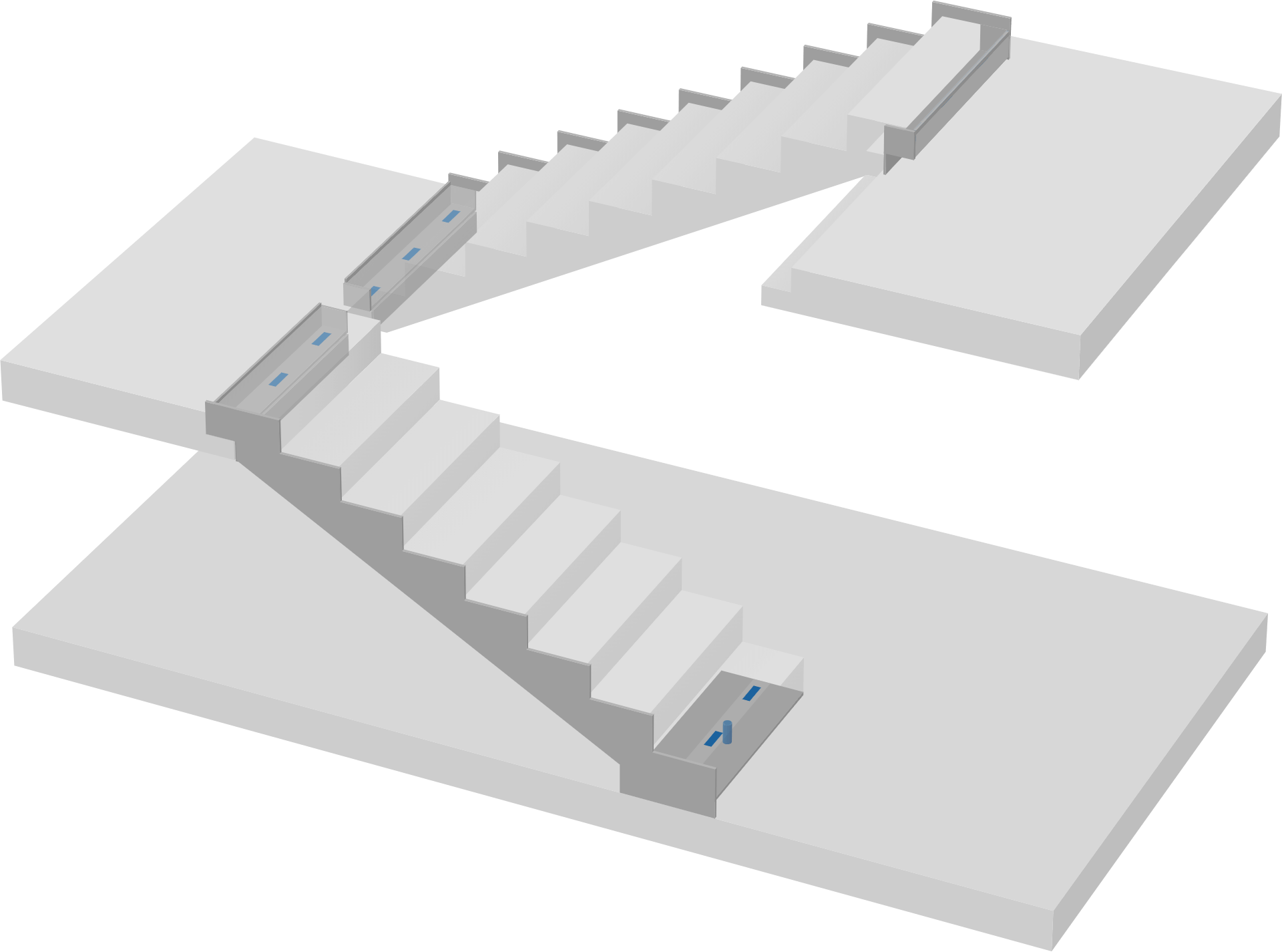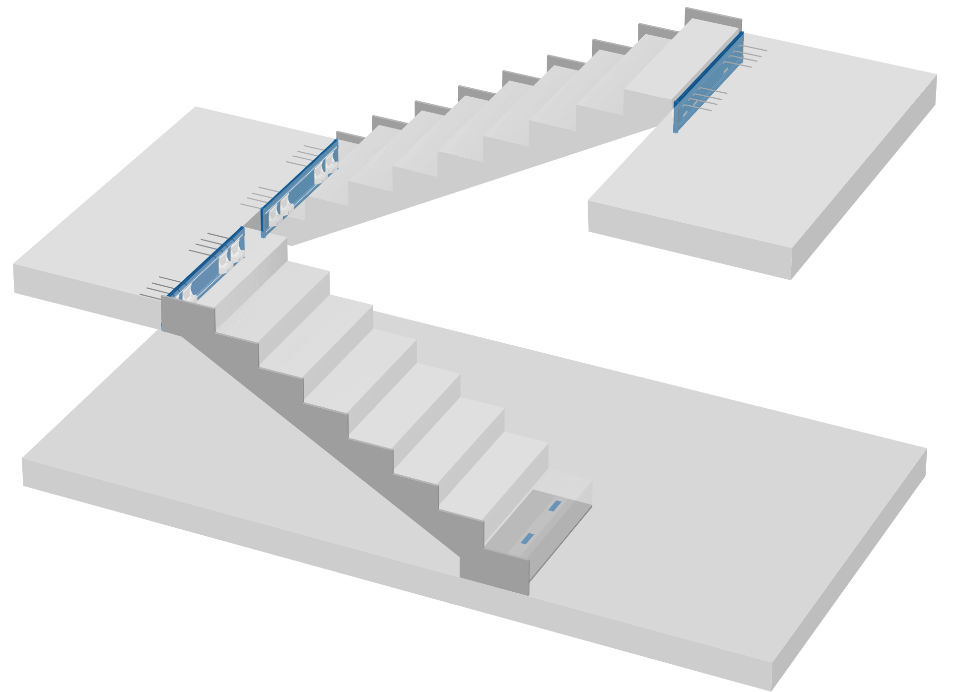 Schöck Tronsole® assure pour les volées d’escaliers droites une protection contre le bruit de choc au plus haut niveau. Les éléments d’isolation au bruit de choc ont été développés spécifiquement pour les différents raccords: entre la volée et le palier ainsi que le radier; entre la volée et le mur.
