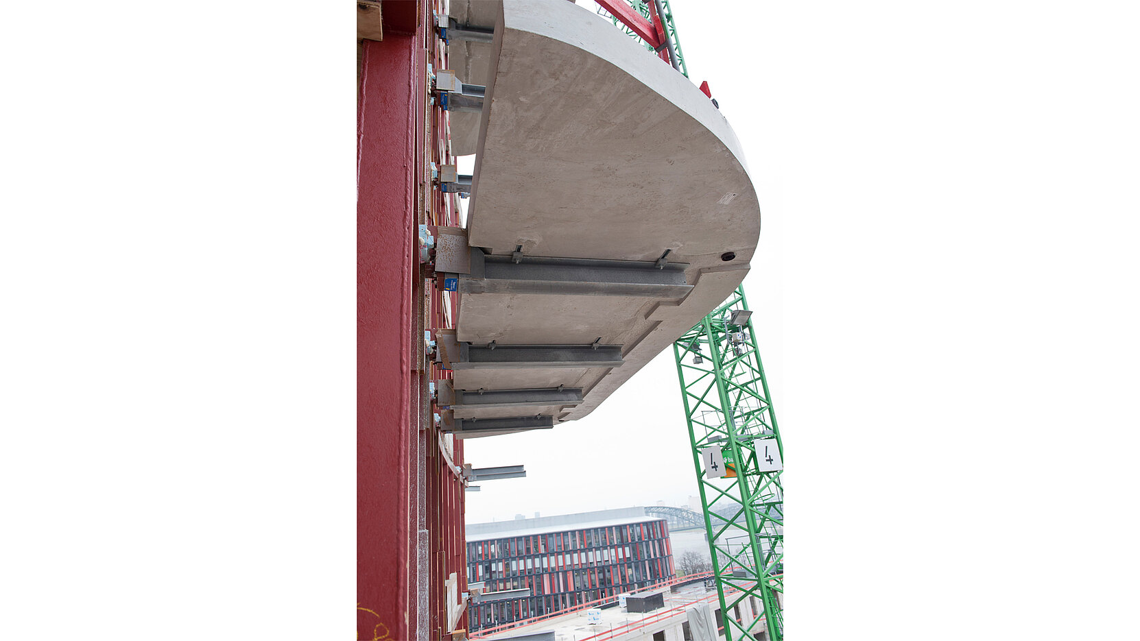Jeszcze kompleksem biurowym, budynek wyznaczał ówczesne standardy. Dlatego architektom zależało na tym, by przekształcić go w równie wyjątkowy budynek mieszkalny, co było prawdziwym wyzwaniem. W tym celu z wieżowca o łukowatej linii należało kompleksowo usunąć liczne niepotrzebne elementy. Podczas prac remontowych również jego fasada otrzymała współczesne oblicze: dziś białe, wykonane z metalu nieregularnie perforowane linie balustrad otaczają budynek, by po dłuższej stronie budynku w obrębie przesuniętych piętrami balkonów wyginać się na zewnątrz. Do montażu tych balkonów udało się wykorzystać pionowe dźwigary stalowe nośnego szkieletu stalowego, które pozostały po usunięciu jego licznych fragmentów. Wykorzystano tu łącznik Schöck Isokorb® T typu S, będący nośnym elementem termoizolacyjnym przeznaczony do łączenia dźwigarów stalowych z konstrukcjami stalowymi. Falisty kształt nowych balkonów nawiązuje do zaokrąglonego, pierwotnego kształtu budowli, podkreśla dynamizm nowego budynku mieszkalnego i nadaje mu jego obecną nazwę: „FLOW Tower”.
