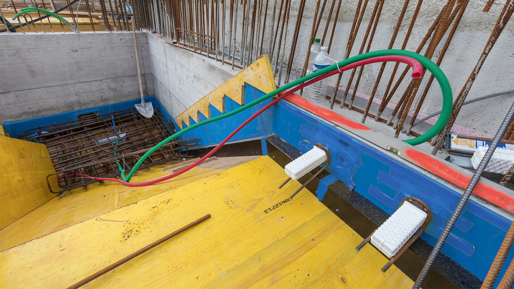 Betonowanie schodów z kilkoma spocznikami pośrednimi obywało się już na miejscu. (Zdjęcie: Patrick Lüthy)