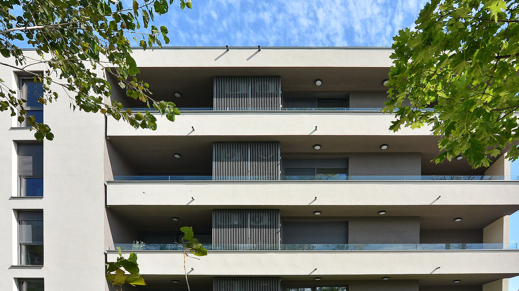 Za prekinitev toplotnih mostov pri balkonih so bili uporabljeni elementi Schöck Isokorb®, na stopniščih pa so za zmanjšanje udarnega zvoka bili vgrajeni elementi Tronsole®.
