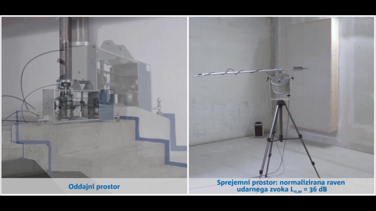 - Zmanjšanje udarnega zvoka po DIN7396: ΔLw* ≥ 32 dB za razred nosilnosti V1, ΔLw* ≥ 31 dB za razred nosilnosti V2.